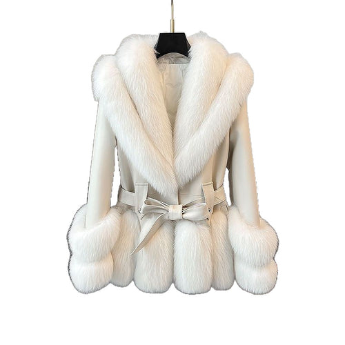 Faux Fox Fur Plush Leather Coat
