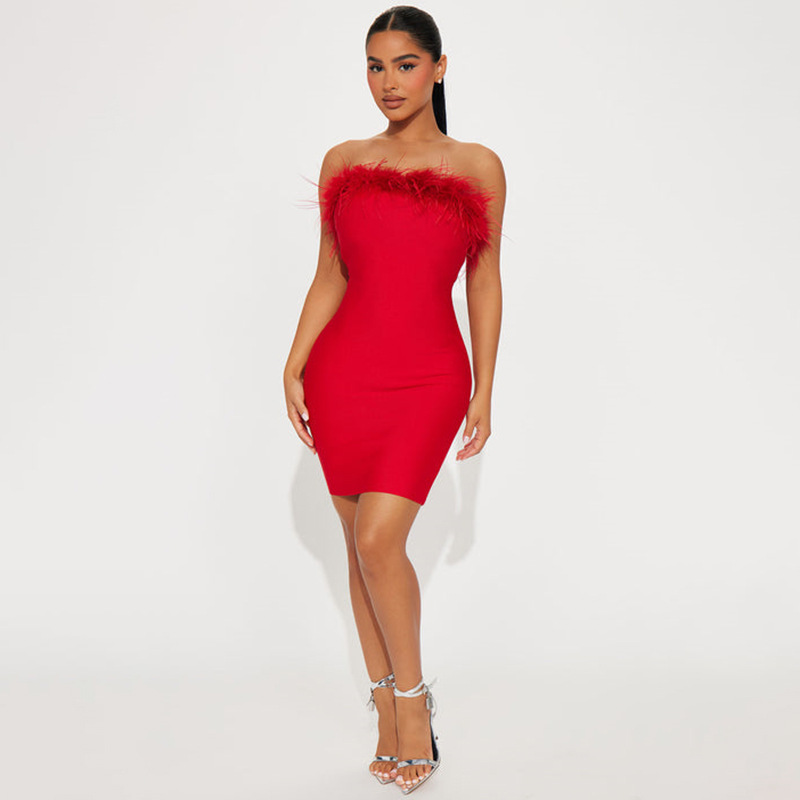 Make a dazzling entrance in this feather short dress for women. Designed to captivate, its soft feather detailing adds movement, texture, and high-glam appeal to a flattering mini silhouette. Perfect for parties, special events, or unforgettable nights out, this dress is made to stand out. Overview