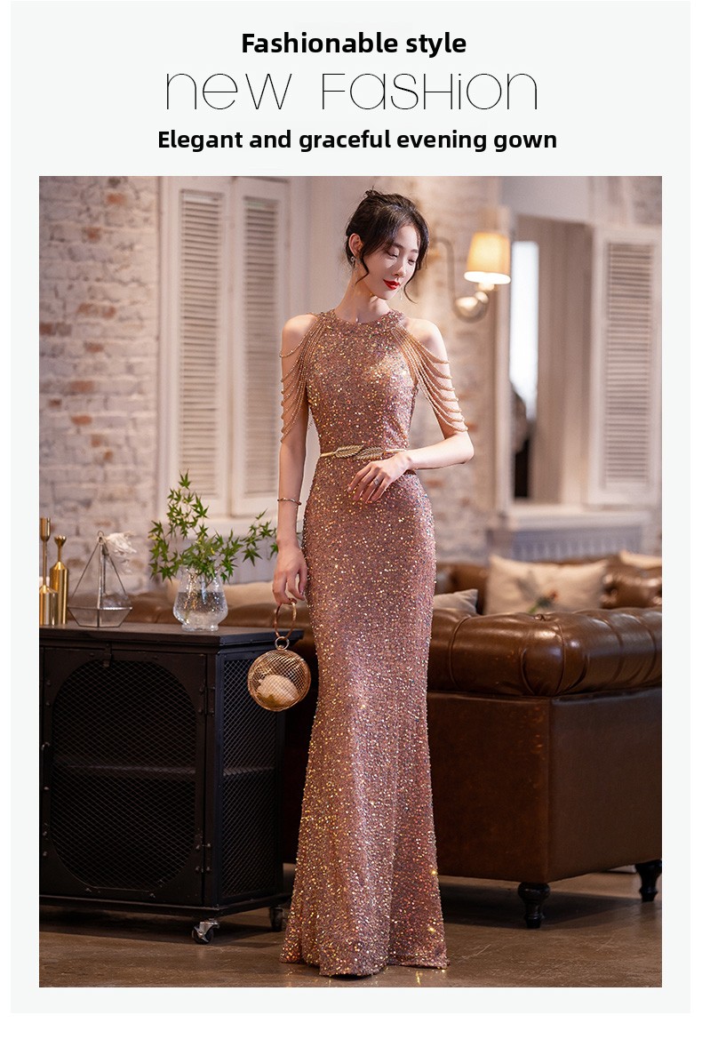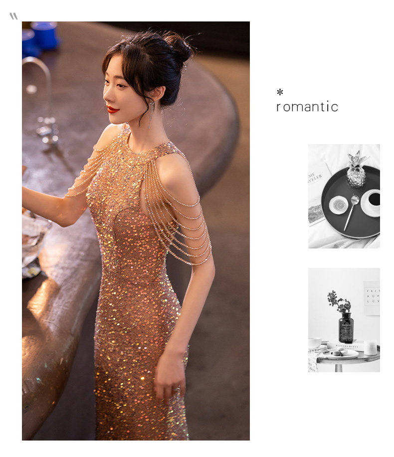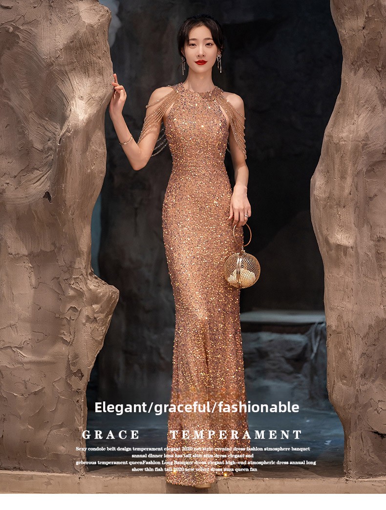 Elegant Design: Features a sophisticated fishtail silhouette with intricate beading and sequin embellishments for a luxurious appearance.